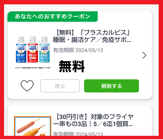 こうしてみるとファミマからもちょくちょく無料クーポンくるなぁ。