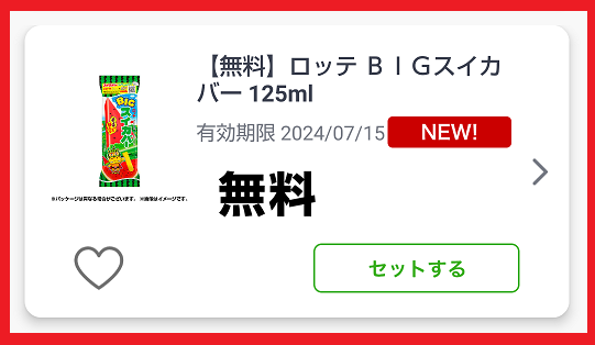 ファミマのアプリから無料のスイカバーのクーポンきたー。