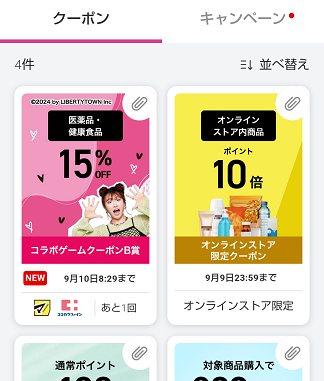 ふつうに医薬品15%オフとか、日用品(つまり食品以外なんでも)10%オフとかのクーポン券がもらえるので、毎日やってます(笑)。