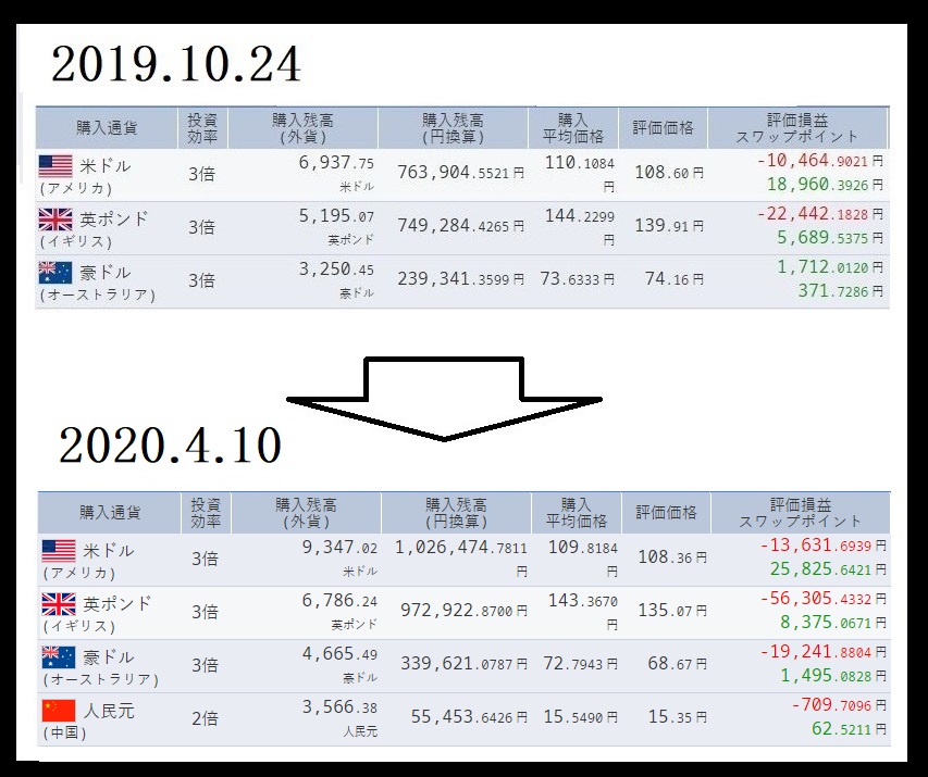 さて、SBIFXトレードの積み立てFX(毎月4万円投資)の6か月の変化をみてみましょう。