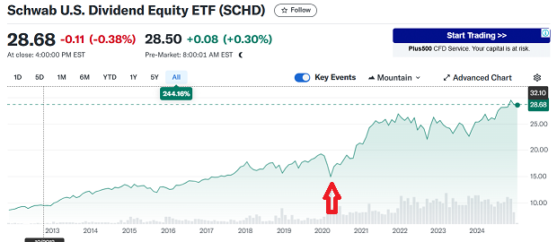 SCHD、コロナショックのときはどうだったのでしょうか。