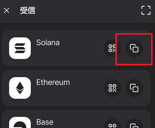 *アプリphantomをひらいて、受信 → Solanaのコピペマークをタップで、受信用のアドレスがゲットできます。