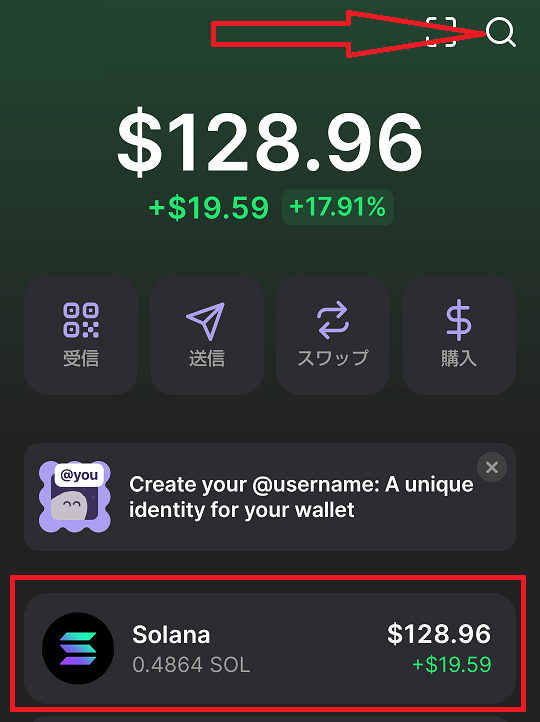 ・買ったSOLを、仮想通貨財布アプリphantomへ送ります。