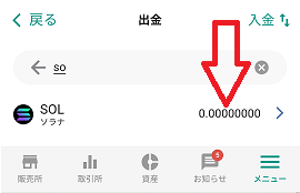 検索窓に通貨名をSOといれると、SOLがでてくるので、そこをタップ
