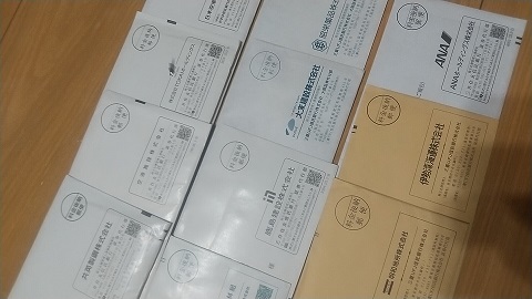 「期末配当金計算書」とか「配当金振込先ご確認」のご案内、とかいう郵送物、郵便物