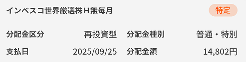 2025.9、いいね。25日平日の朝にカブコム証券みたら分配金が更新されてた。